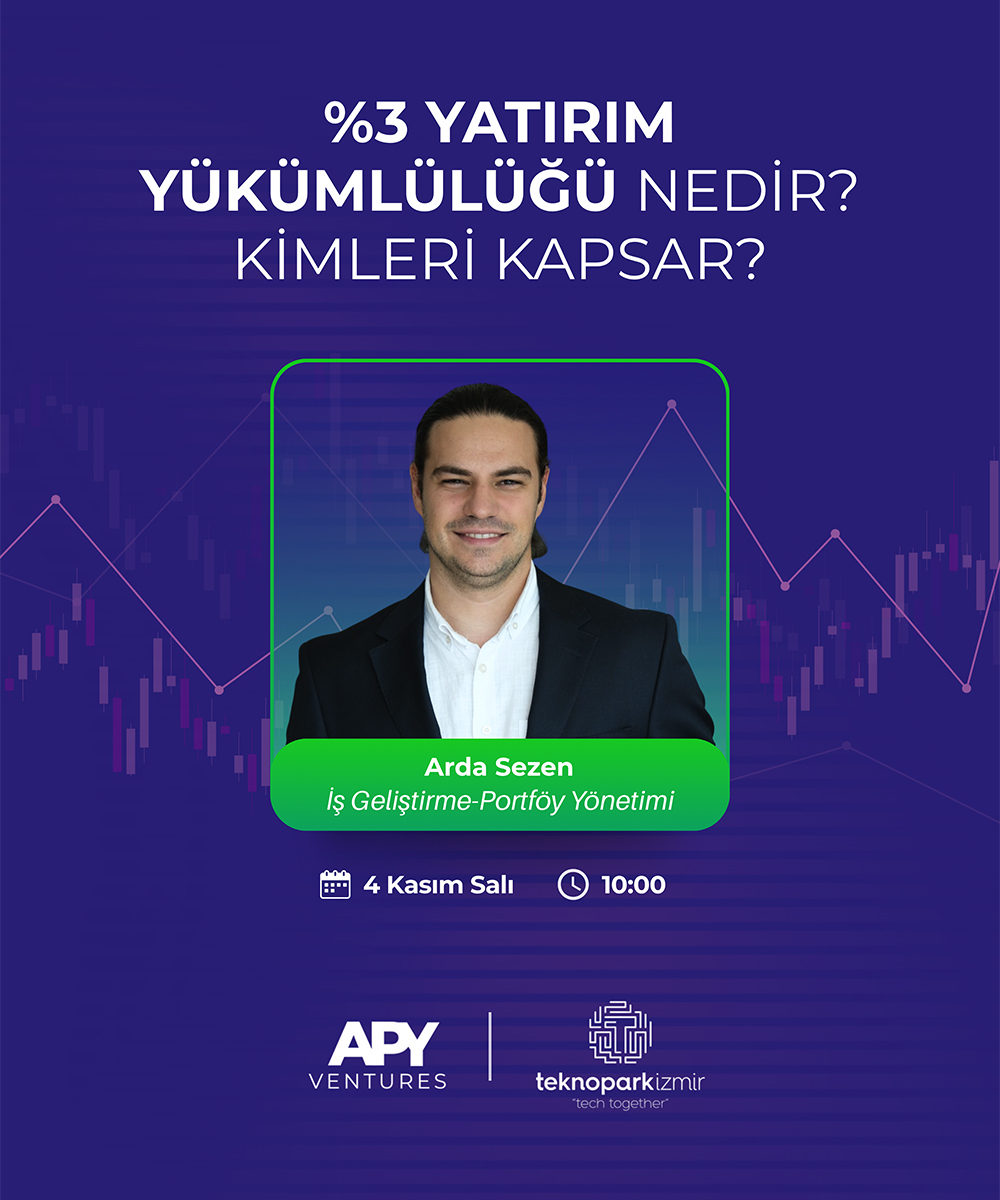 Teknoloji Geliştirme Bölgeleri Kazanç İstisnası ve Ar-Ge İndiriminden yararlanan firmalar için; %3 Yatırım Yükümlülüğü & APY Ventures Fonları Bilgilendirme webinarına davetlisiniz!
