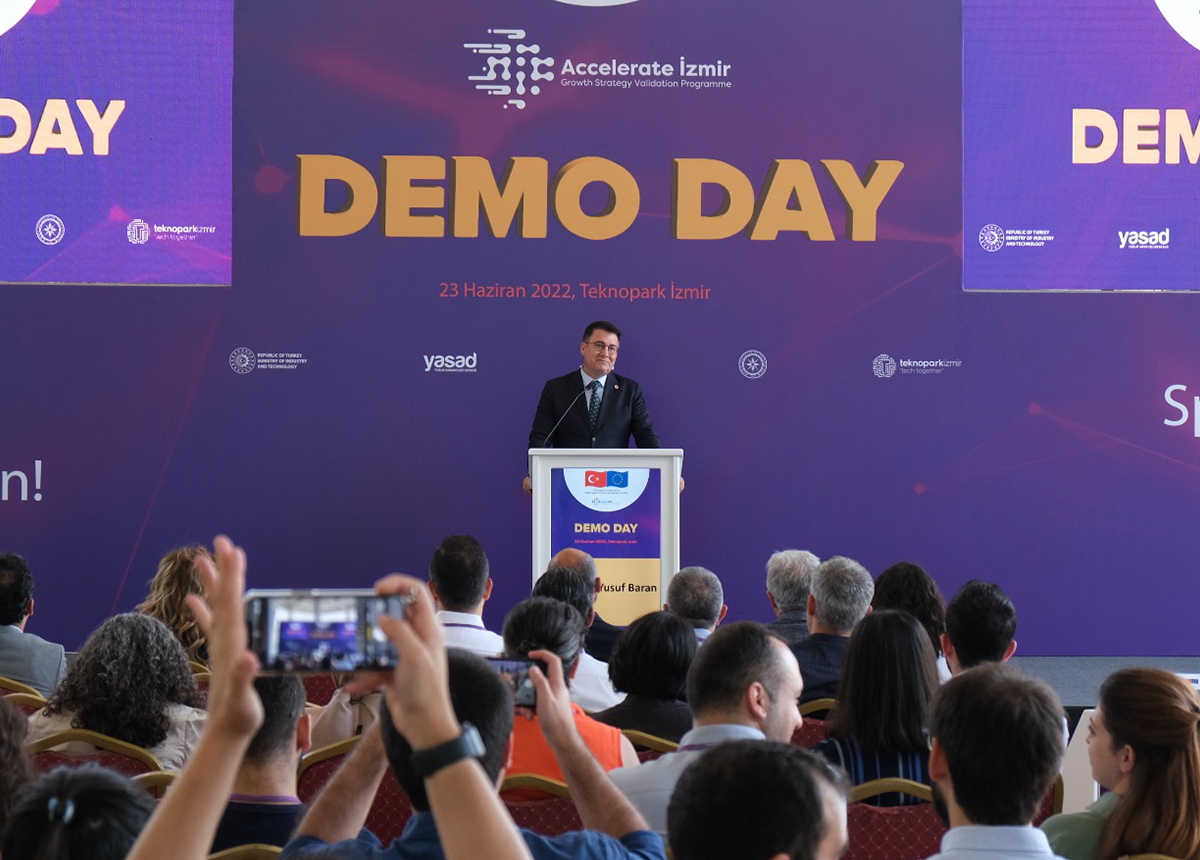 İzmir NIC kapsamında yürüttülen Accelerate İzmir ile büyümeye ve İzmirden dünyaya açılmaya hazır 1. Dönem firmalarımızın sahne aldığı Accelerate İzmir Demo Day etkinliği İnovasyon Merkez’inde gerçekleştirildi.