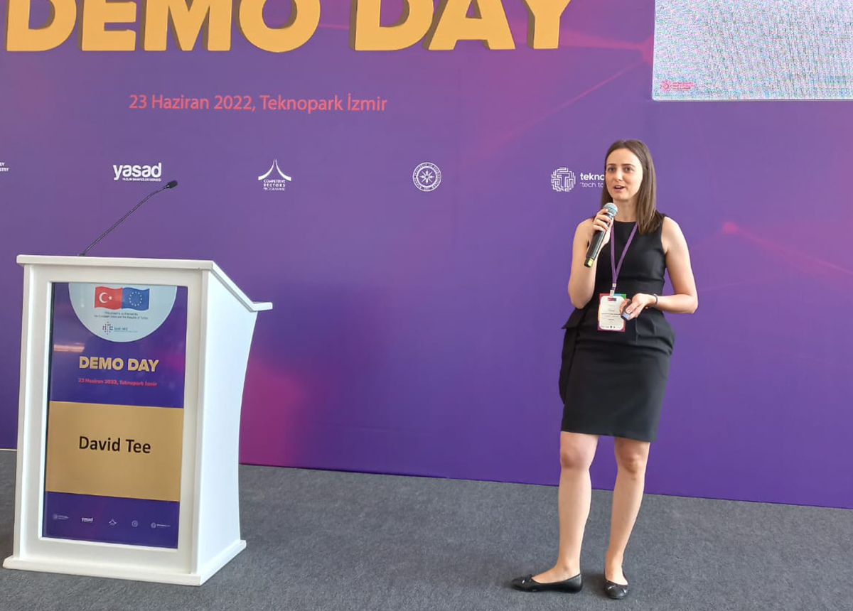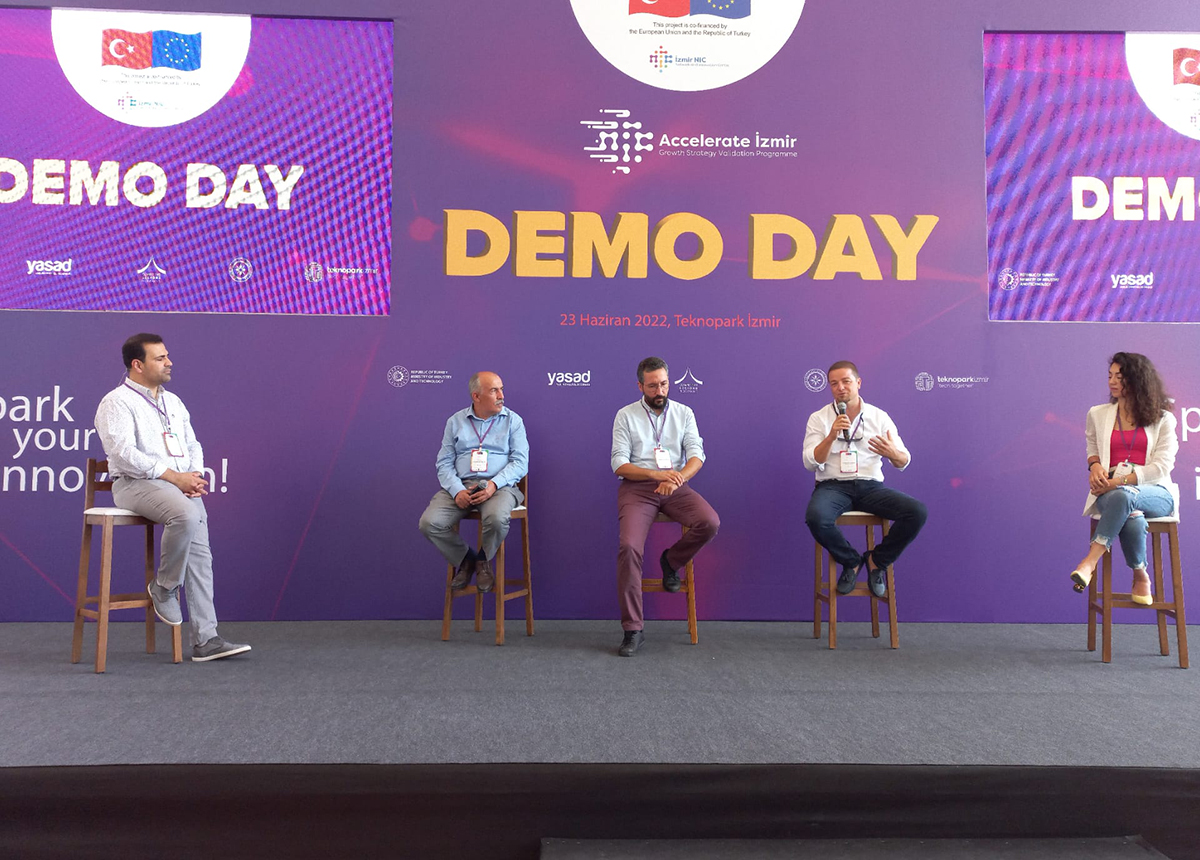 Accelerate İzmir Demo Day etkinliğinin anahtar konuşmacısı Litum Technologies CEO'su Özgür Ülkü, deneyimlerini katılımcılarla paylaşırken, devamında düzenlenen panelde Accelerate İzmir 1. dönem katılımcı firmaları, programdaki deneyimlerini aktardı.