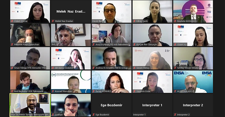 Çevrimiçi olarak 7 Aralık Salı günü gerçekleştirilen toplantıya; Teknopark İzmir Genel Müdürü Prof. Dr. Metin Tanoğlu, TC Sanayi ve Teknoloji Bakanlığı temsilcisi, İzmir NIC Proje ortakları İYTE ve YASAD temsilcileri, konsorsiyum partnerleri ve proje yürütücüsü Teknopark İzmir temsilcileri, İzmir’in önemli Sivil Toplum ve Endüstri Kuruluşlarının Temsilcileri ve Konsorsiyum Ortakları katıldı.